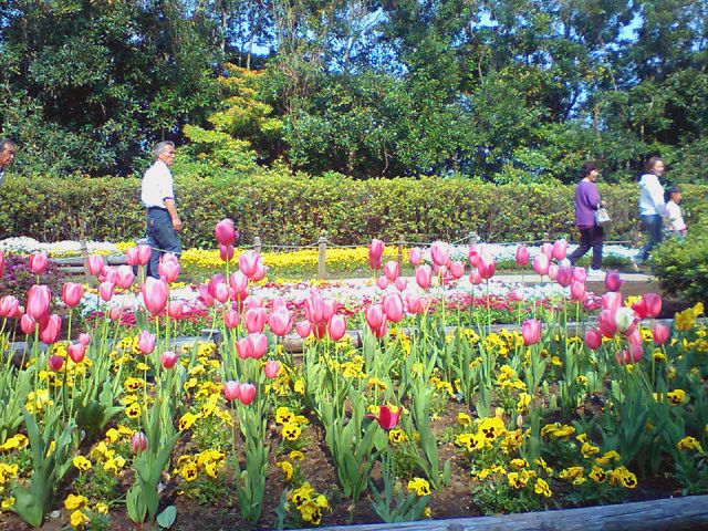 ↑島の中で咲き誇っていたチューリップとパンジーです。